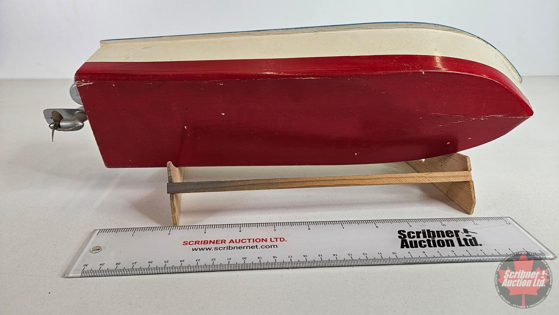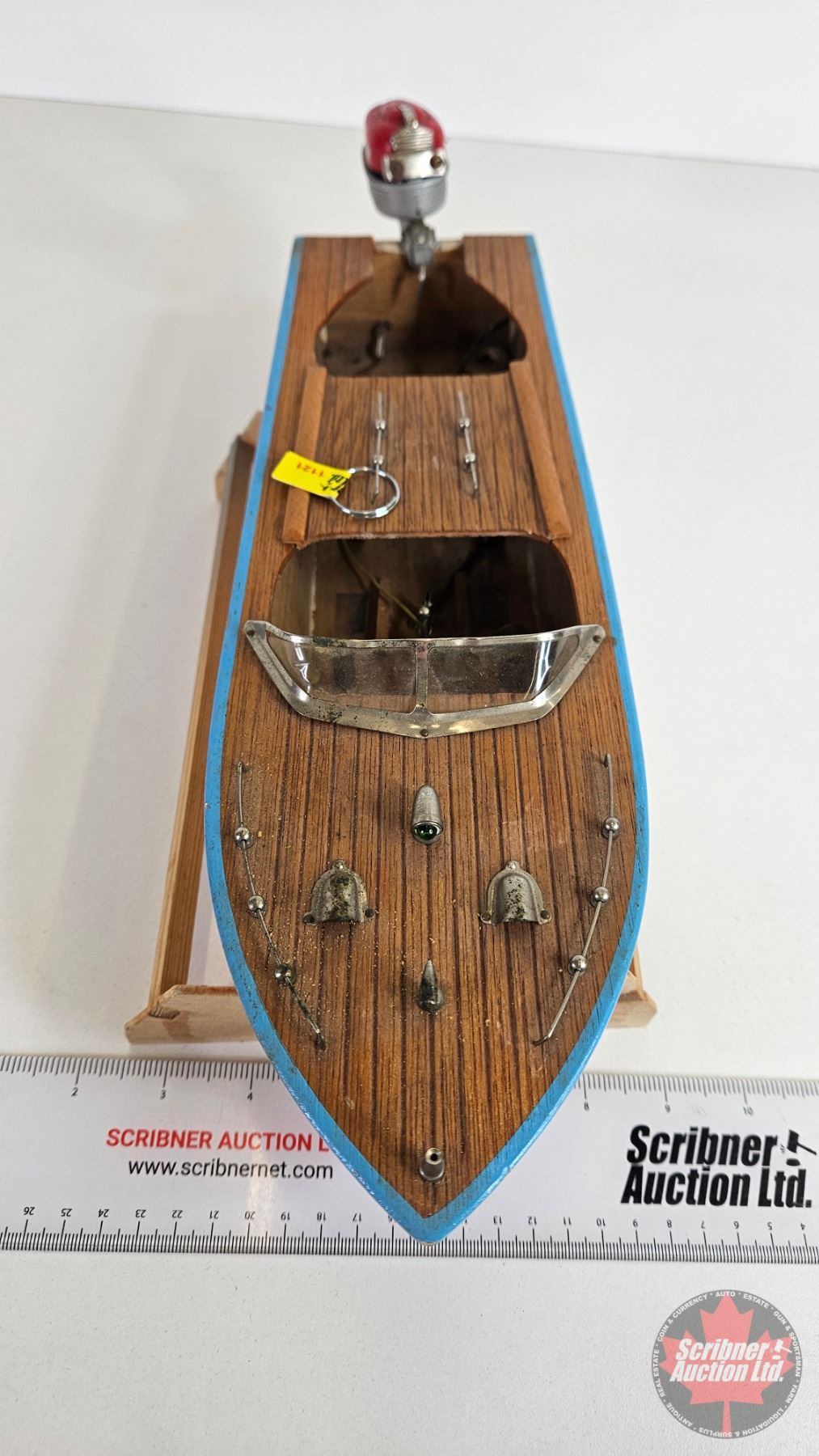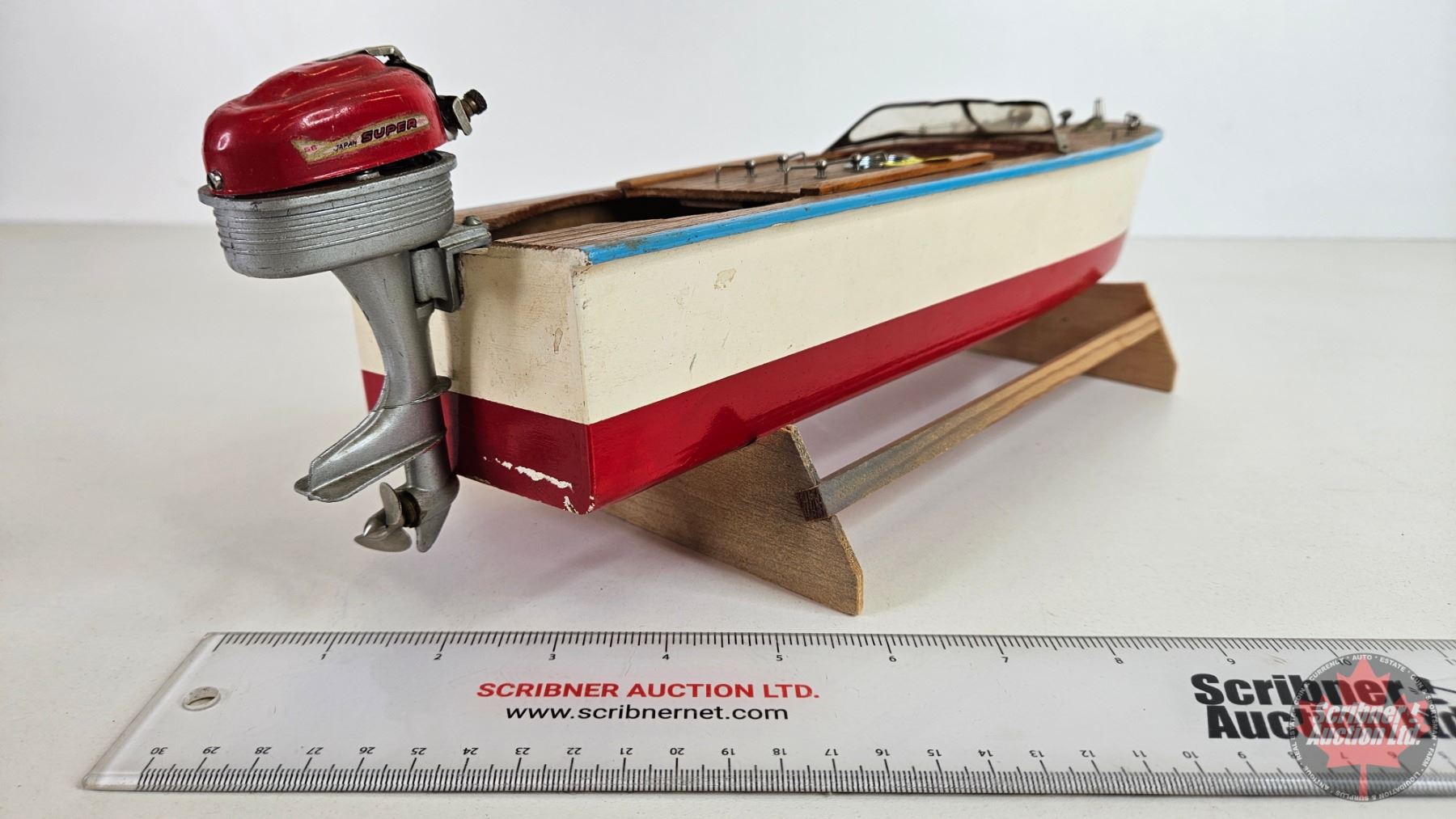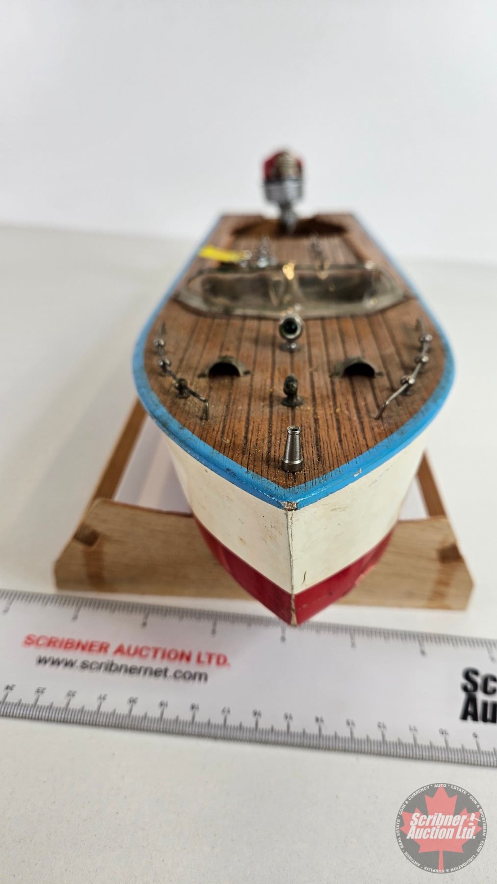 1950's Wooden Toy Boat with Working Outboard Motor (Batt Op)