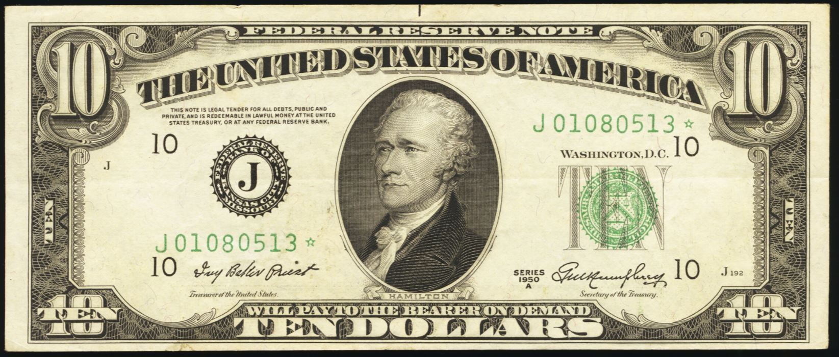 One 1950A $10 STAR Kansas City Federal Reserve Note.