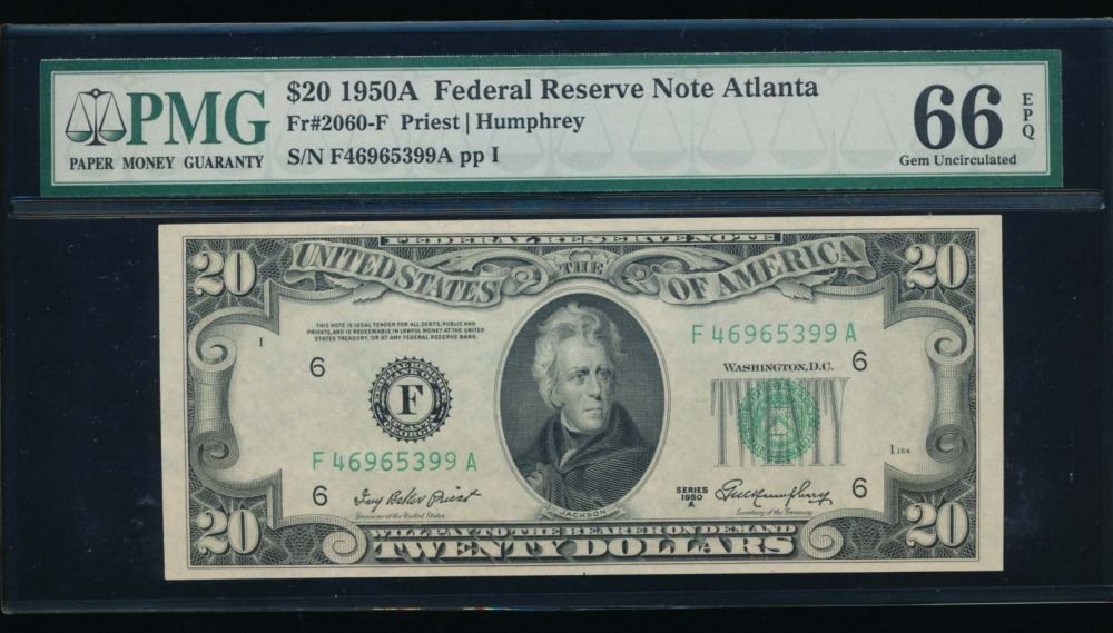 One 1950A $20 Atlanta Federal Reserve Note PMG 66EPQ.