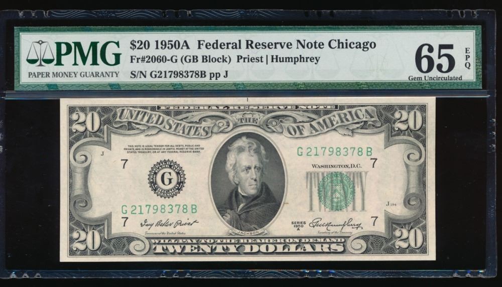 One 1950A $20 Chicago Federal Reserve Note PMG 65EPQ.