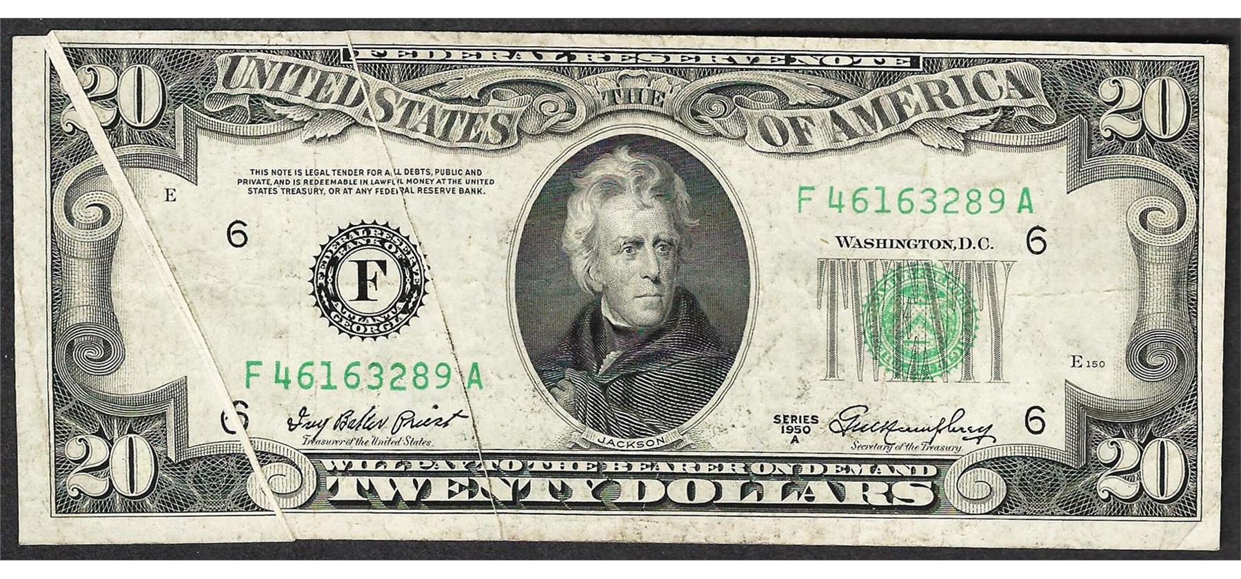 One 1950A $20 Federal Reserve Note Gutter Fold ERROR.