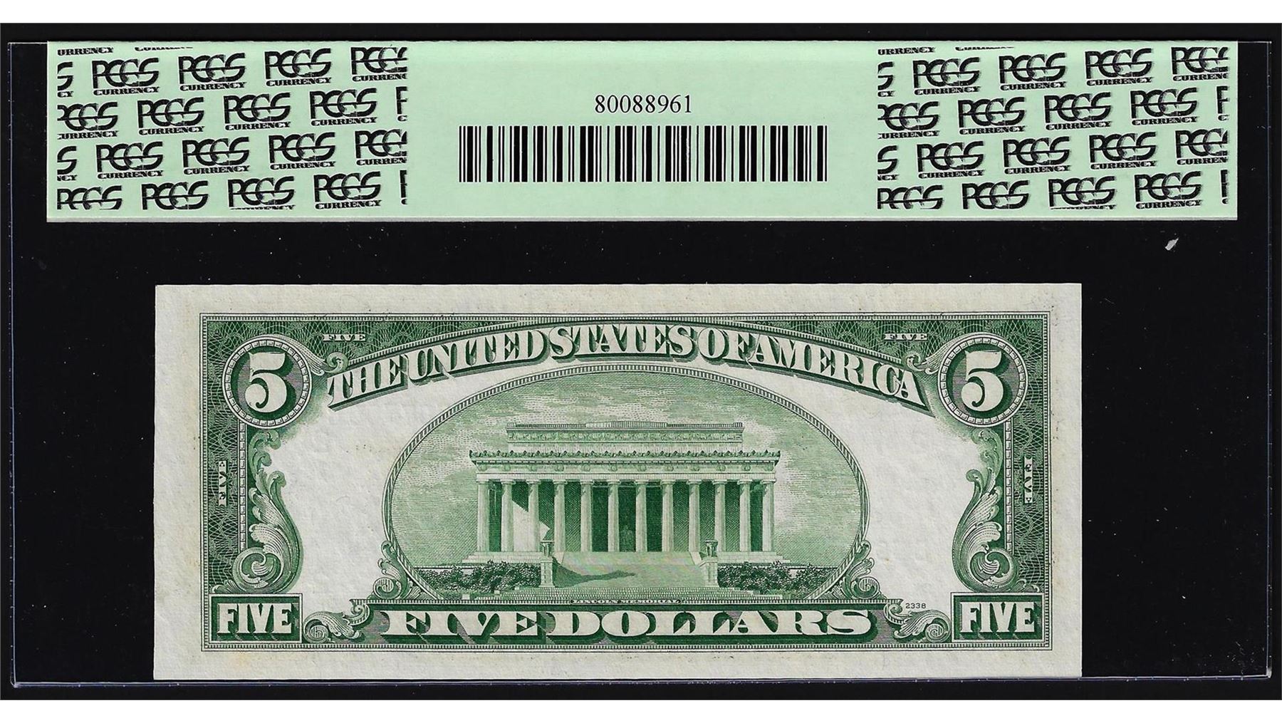 One 1950A $5 Federal Reserve Note 3 Digit Mismatched Serial Number ERROR PCGS Gem 65PPQ. PCGS Graded.