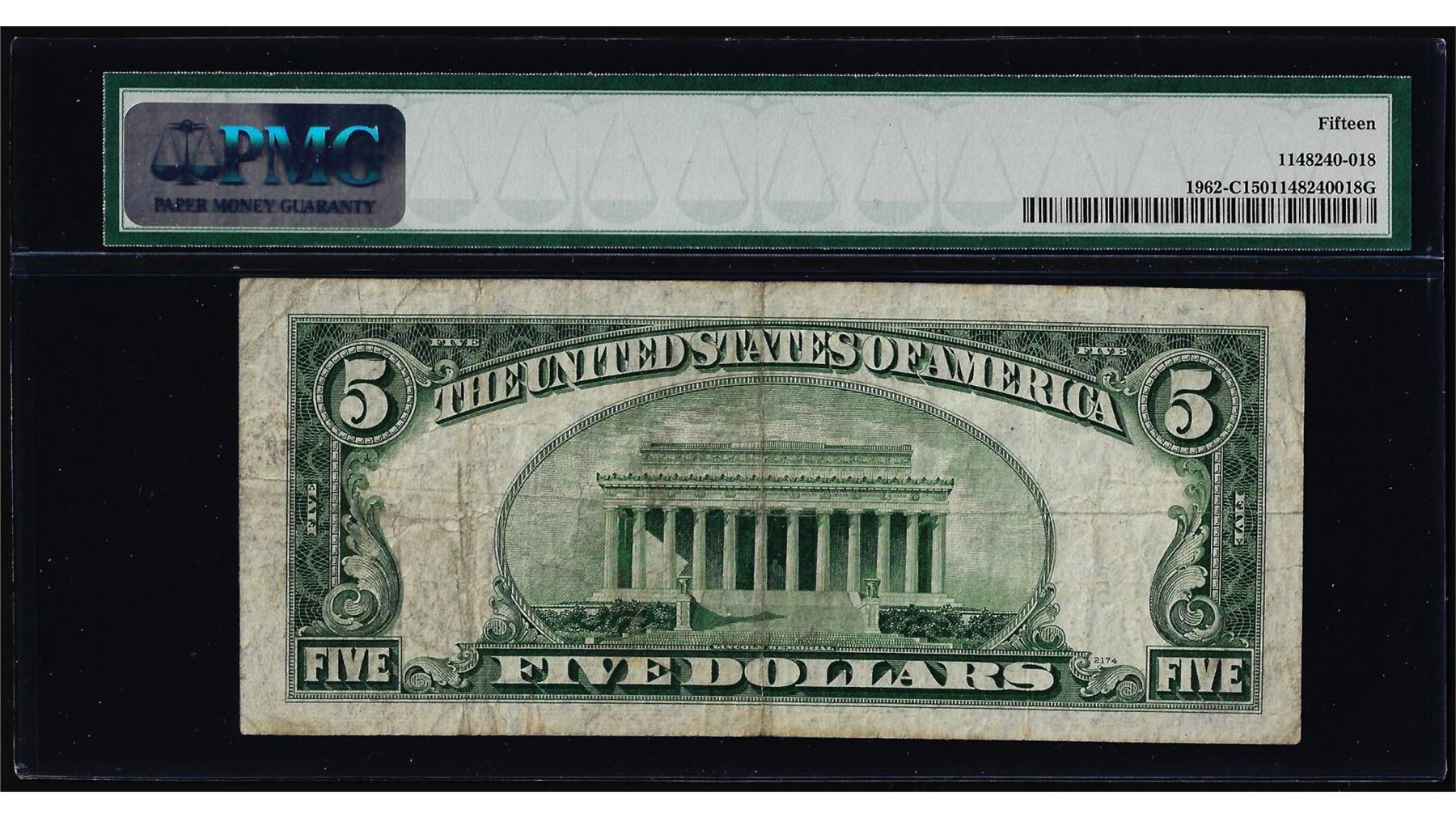 One 1950A $5 Federal Reserve Note Mismatched Serial Number Error Fr.1962-C PMG Ch. Fine 15. PMG Certified.