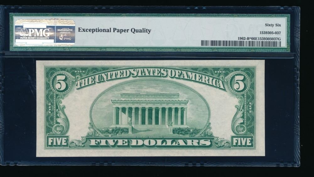 One 1950A $5 New York Federal Reserve STAR Note PMG 66EPQ.