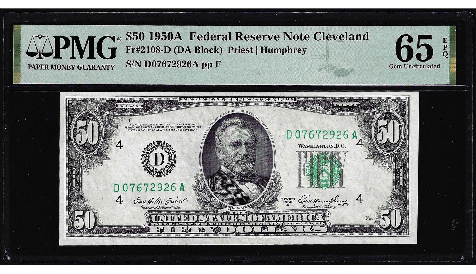 1950A $50 Federal Reserve Note Cleveland Fr.2108-D PMG Gem Uncirculated 65EPQ