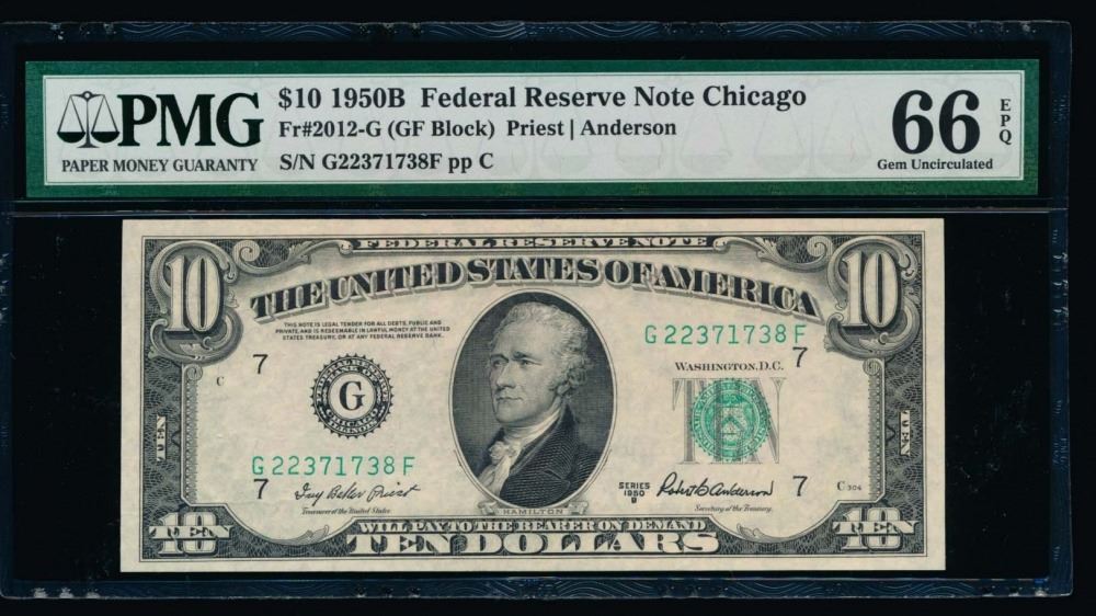 One 1950B $10 Chicago Federal Reserve Note PMG 66EPQ.