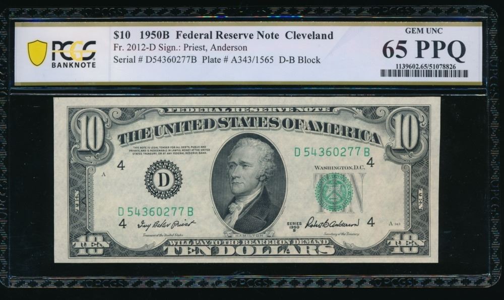 One 1950B $10 Cleveland FRN PCGS 65PPQ.