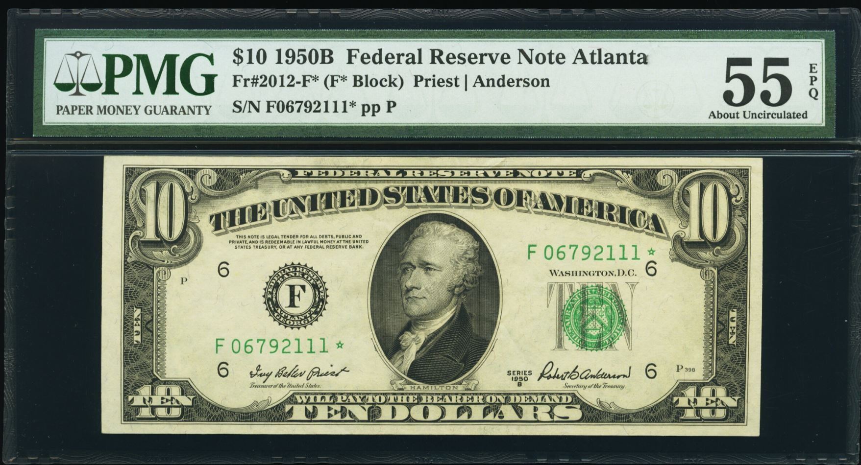 One 1950B $10 STAR Atlanta FRN PMG 55EPQ.