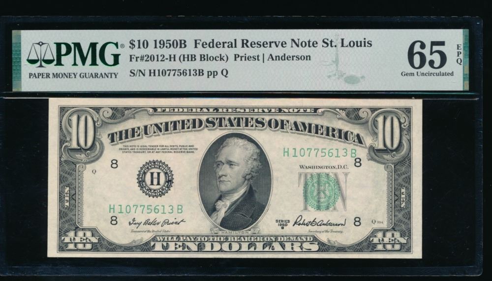 One 1950B $10 St Louis FRN PMG 65EPQ.