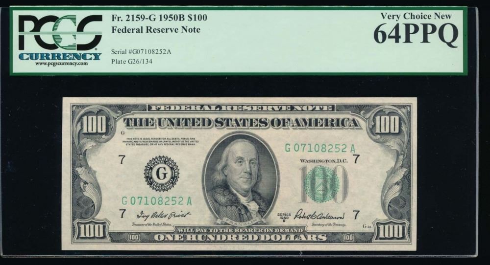 One 1950B $100 Chicago Federal Reserve Note PCGS 64PPQ.