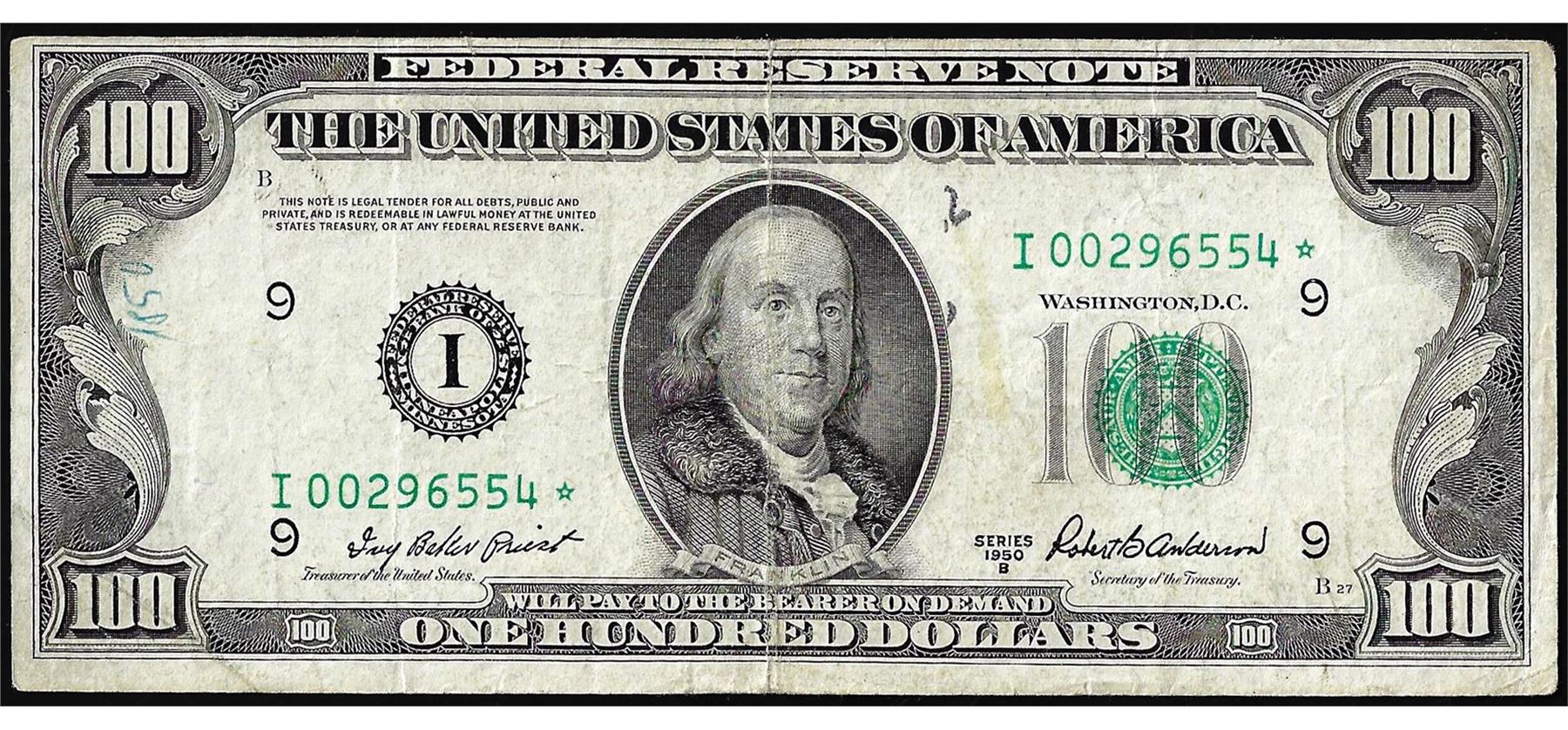 One 1950B $100 Federal Reserve Star Note Minneapolis.
