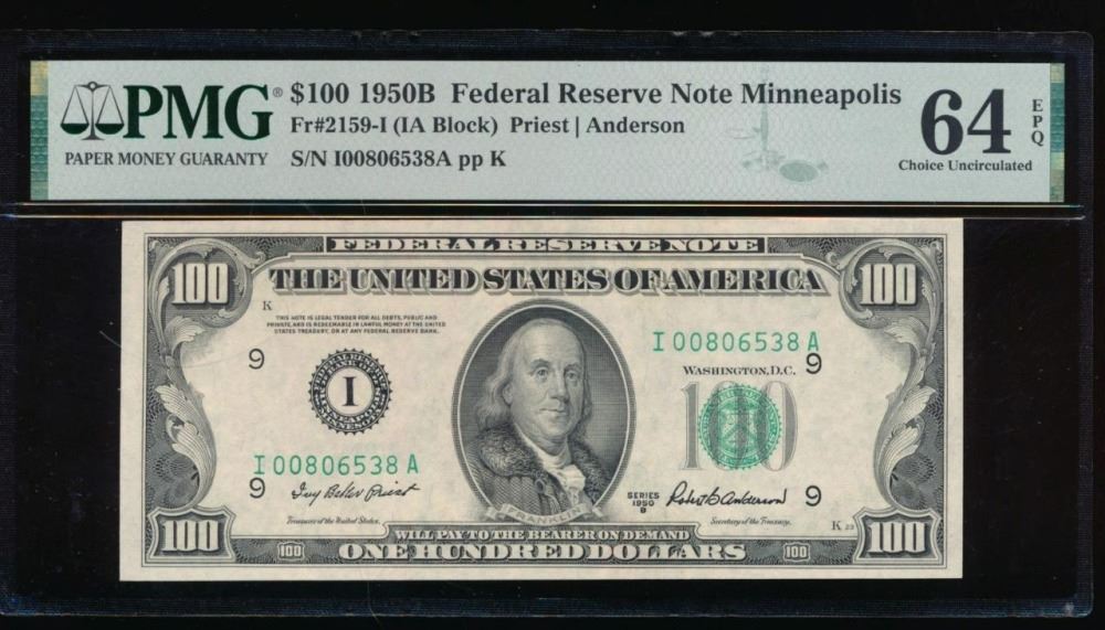 One 1950B $100 Minneapolis FRN PMG 64EPQ.