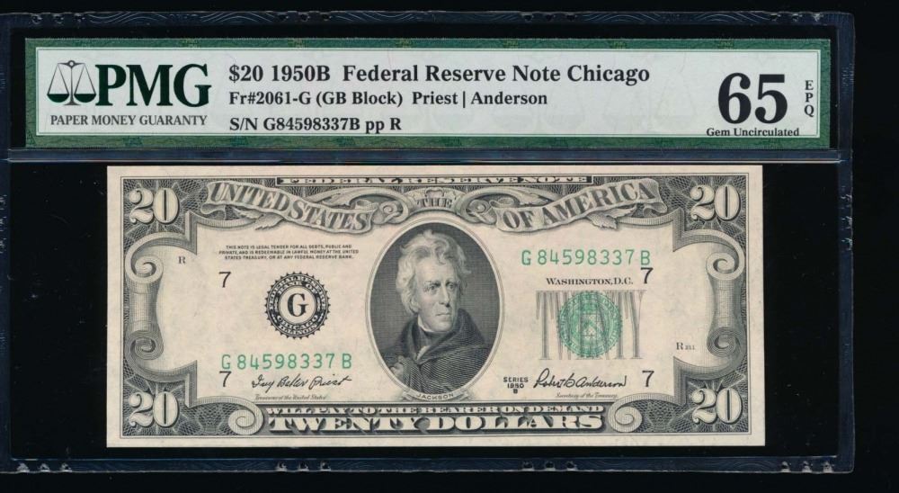 One 1950B $20 Chicago Federal Reserve Note PMG 65EPQ.