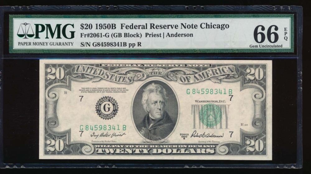 One 1950B $20 Chicago Federal Reserve Note PMG 66EPQ.