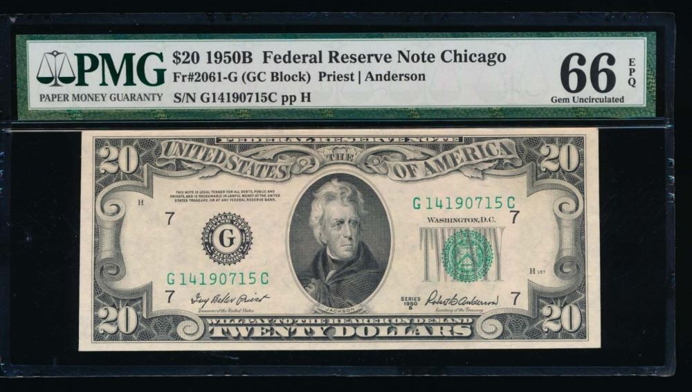 One 1950B $20 Chicago Federal Reserve Note PMG 66EPQ.