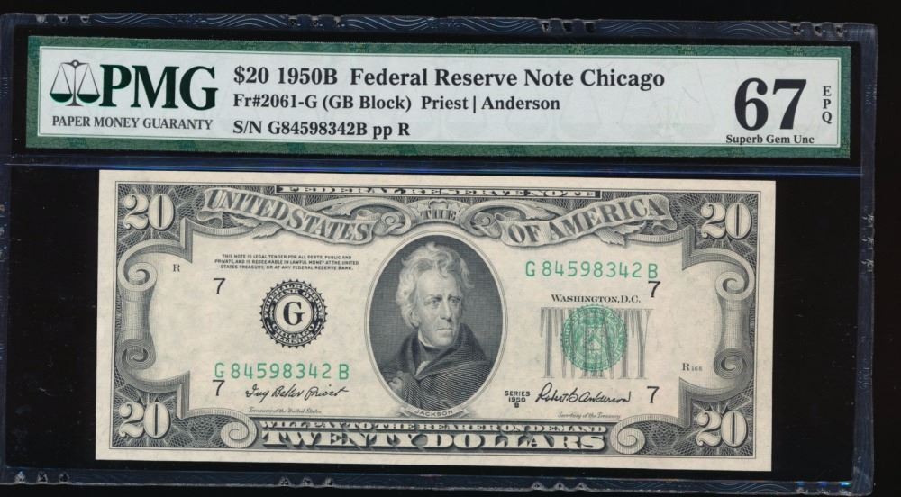 One 1950B $20 Chicago Federal Reserve Note PMG 67EPQ.