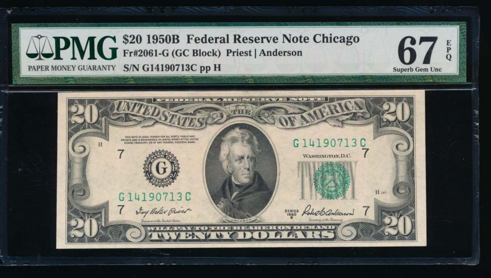 One 1950B $20 Chicago Federal Reserve Note PMG 67EPQ.