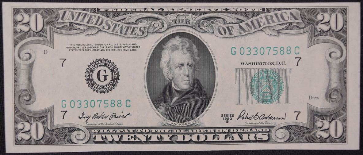 One 1950B $20 Chicago Federal Reserve Note.