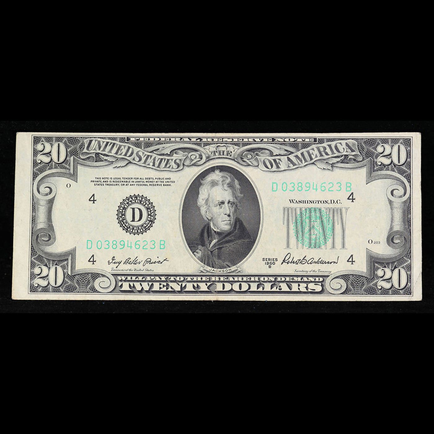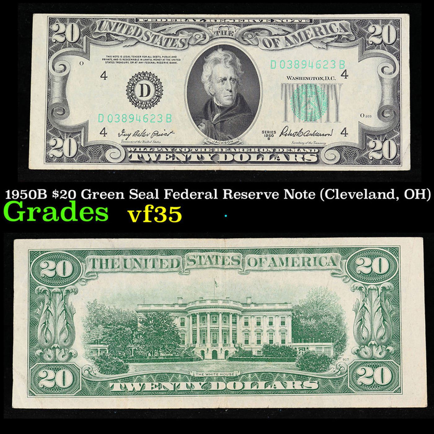 1950B $20 Green Seal Federal Reserve Note (Cleveland, OH) Grades vf++