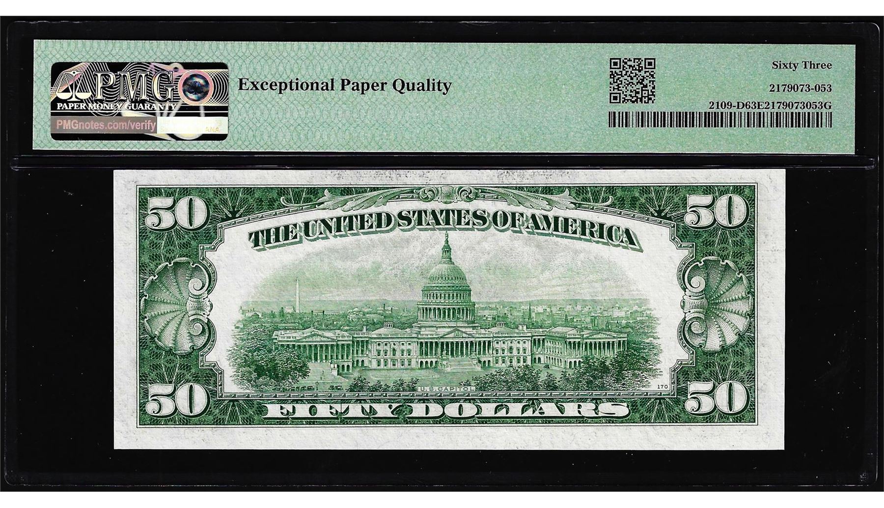 1950B $50 Federal Reserve Note Cleveland Fr.2109-D PMG Choice Uncirculated 63EPQ