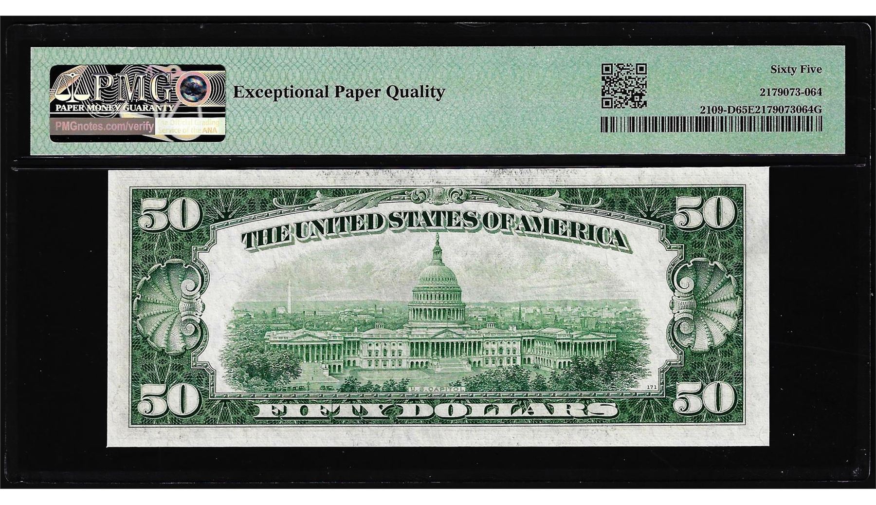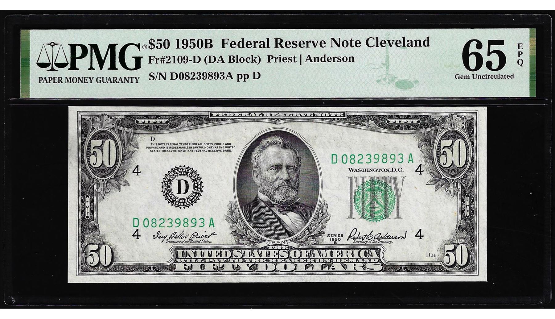 One 1950B $50 Federal Reserve Note Cleveland Fr.2109-D PMG Gem Uncirculated 65EPQ. PMG Certified.