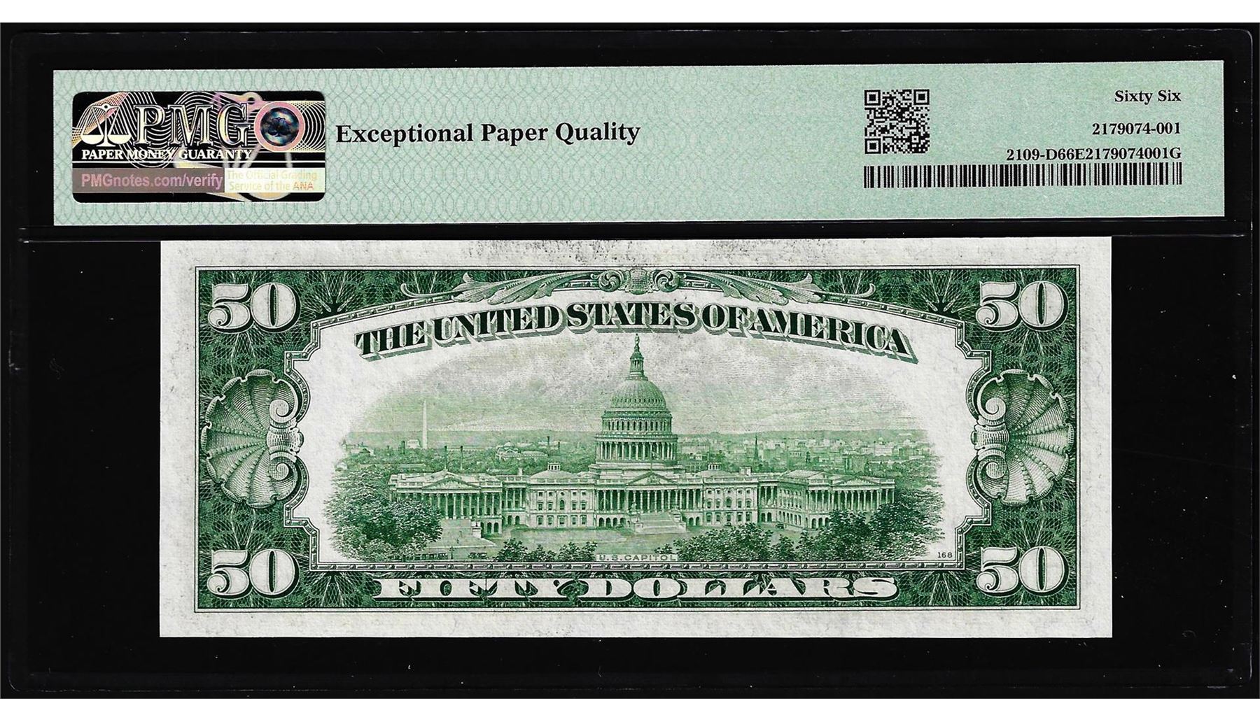 One 1950B $50 Federal Reserve Note Cleveland Fr.2109-D PMG Gem Uncirculated 66EPQ. PMG Certified.