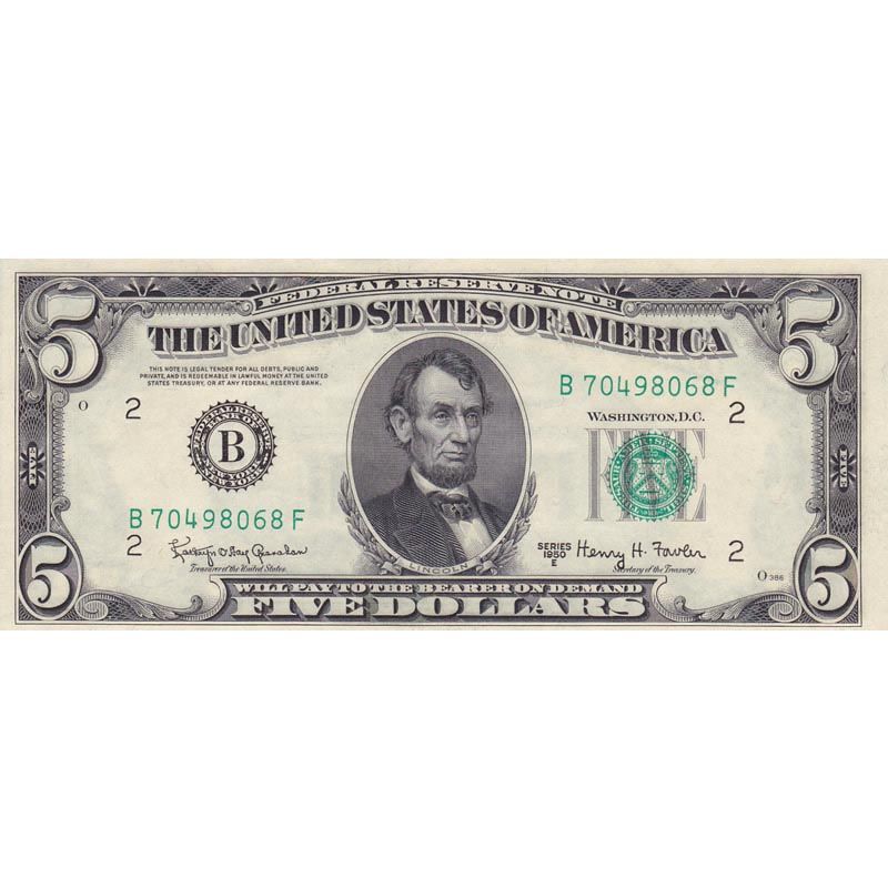 1950B,E $5 Federal Reserve Note, UNC **|**|** 1950B,E $5 Federal Reserve Note, UNC ; MSRP: $0