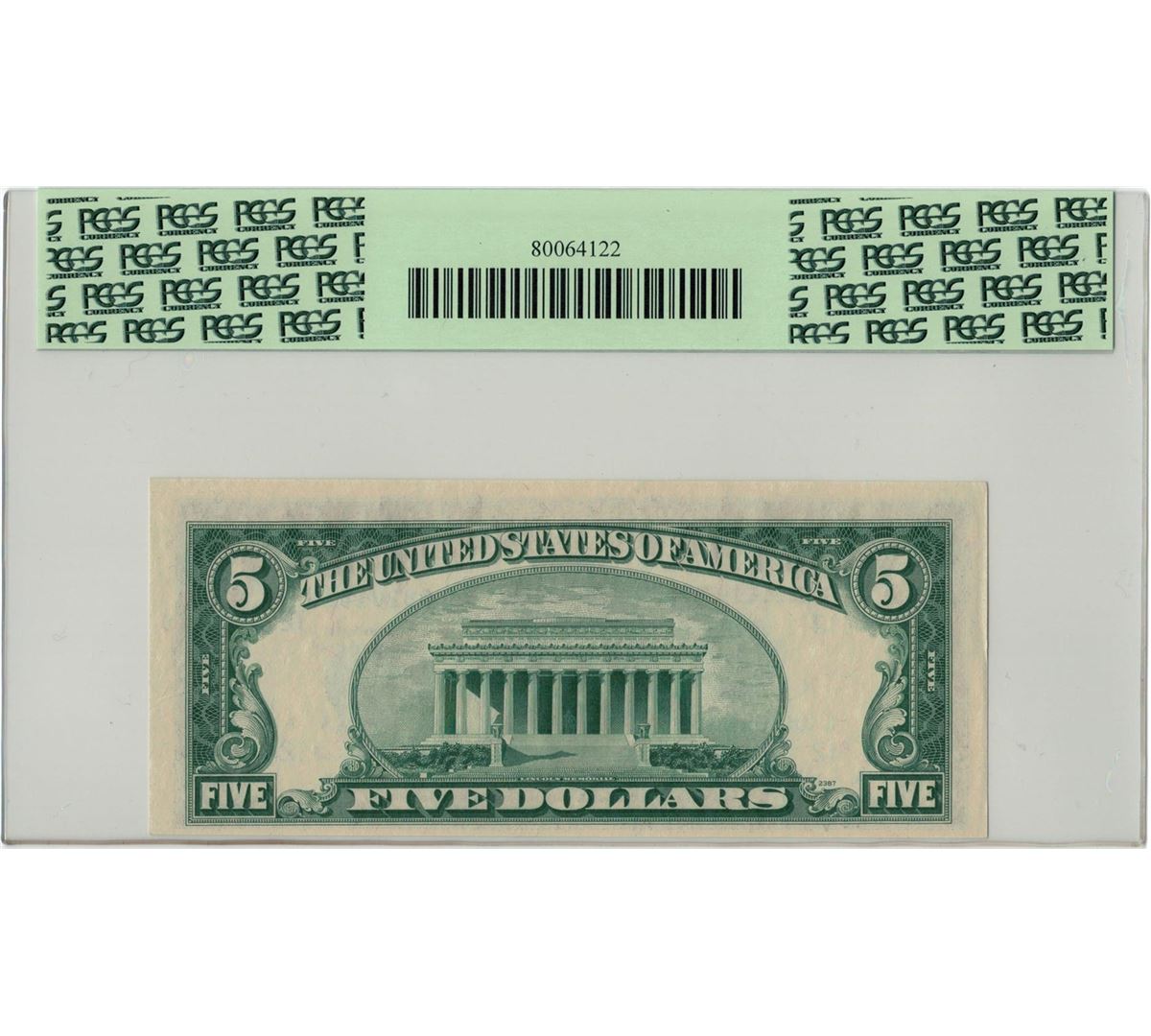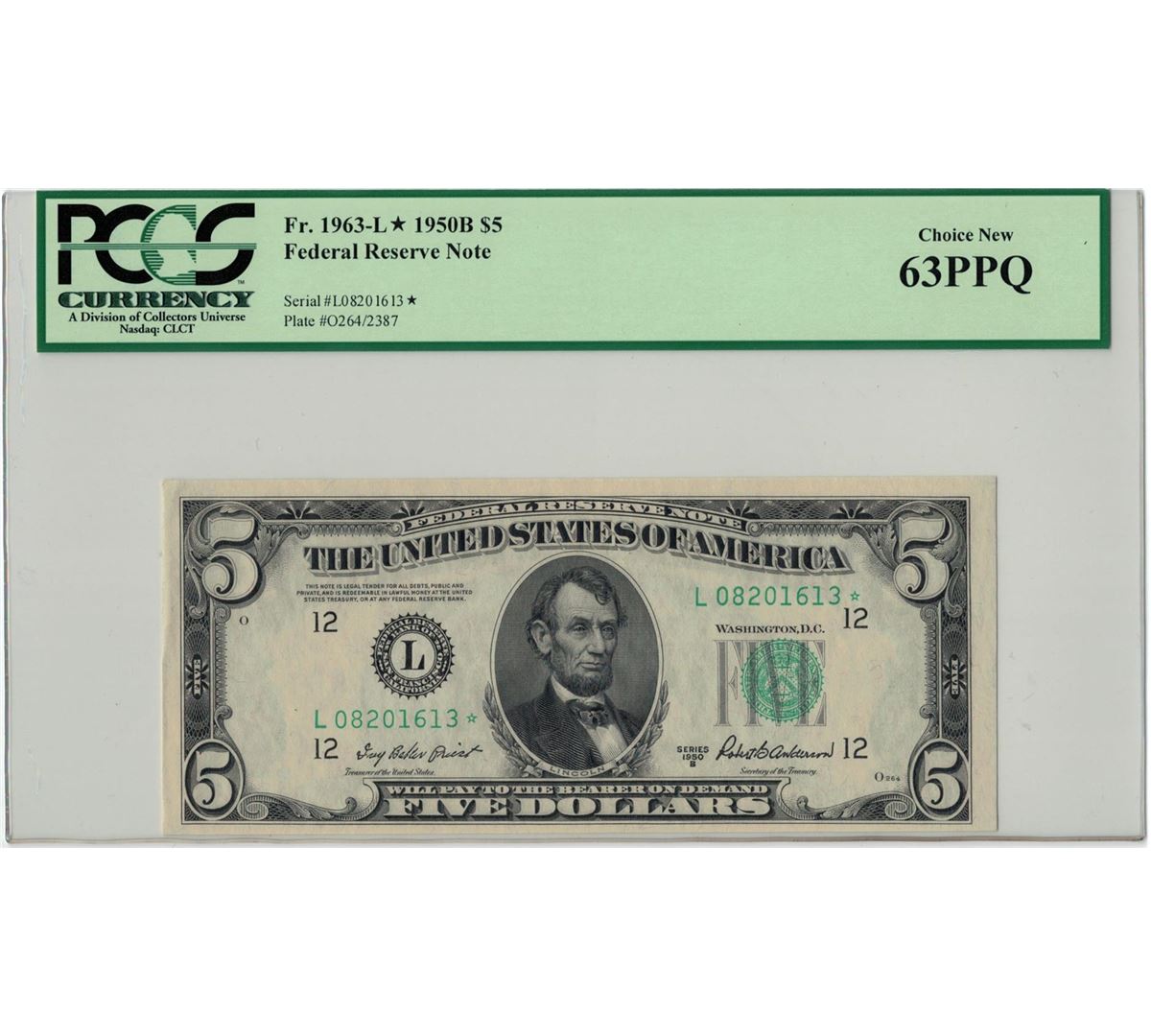 One 1950B PCGS CN 63PPQ $5 Federal Reserve Note. PCGS Certified.