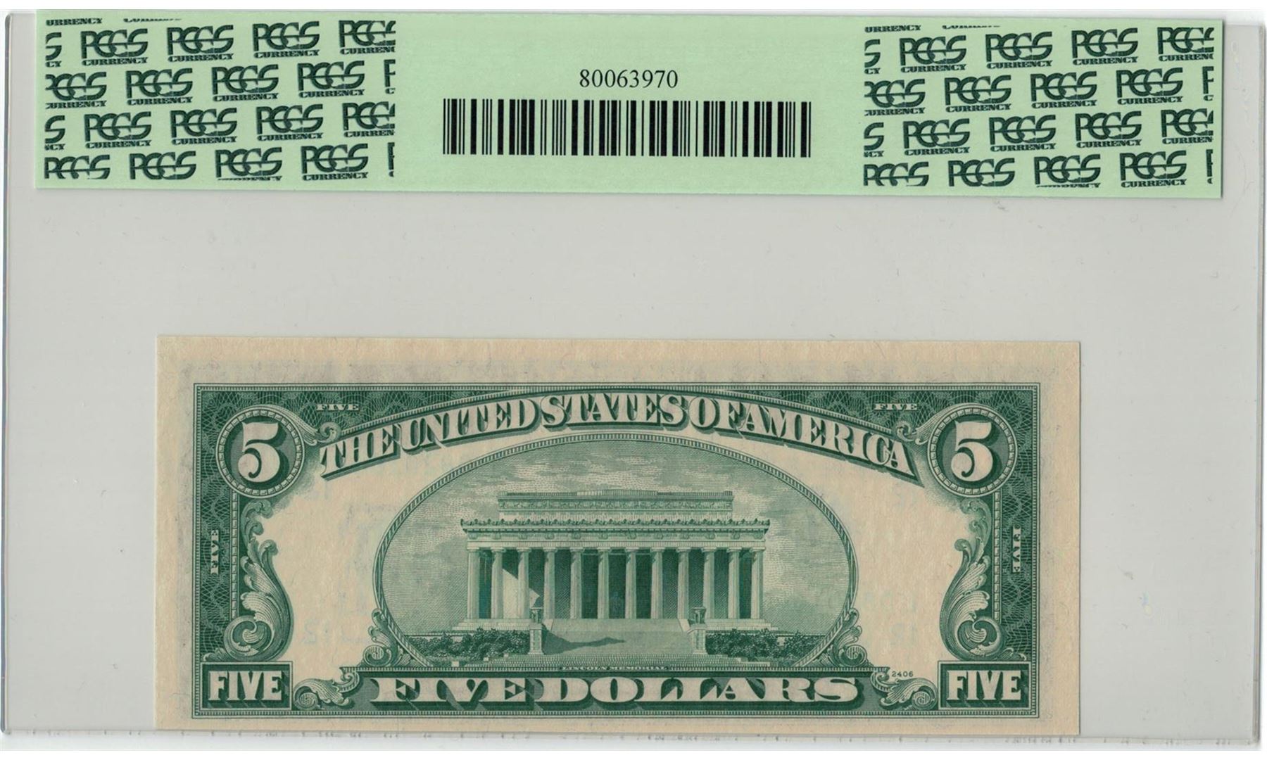 One 1950B PCGS CN 63PPQ $5 Federal Reserve Note. PCGS Certified.