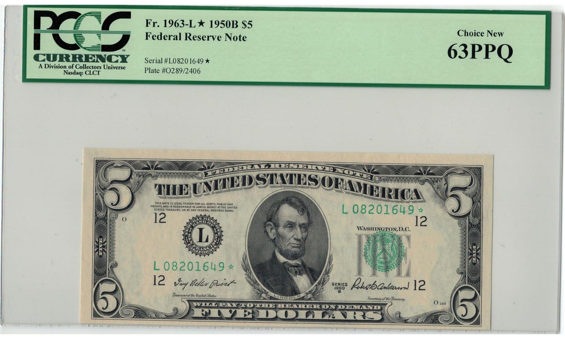 One 1950B PCGS CN 63PPQ $5 Federal Reserve Note. PCGS Certified.