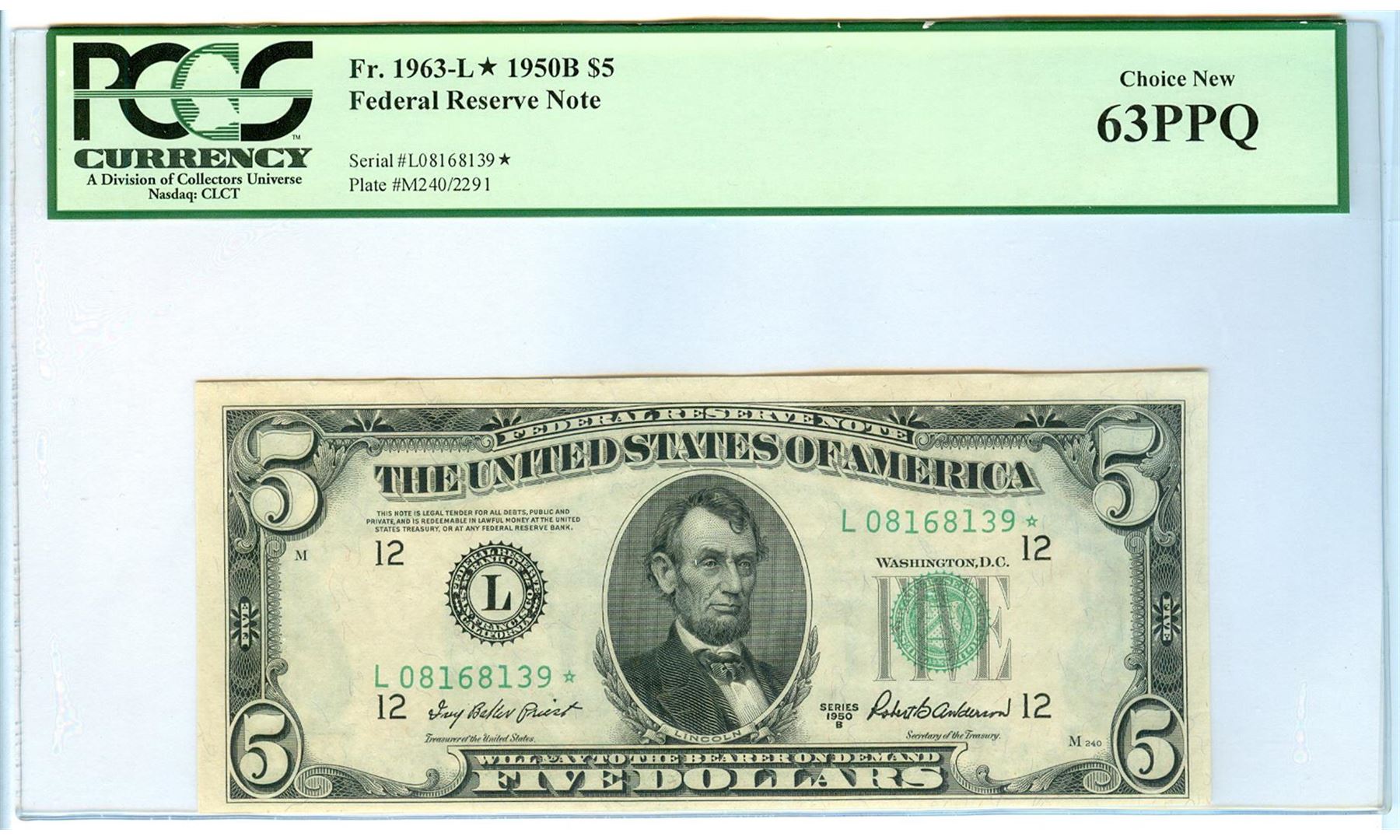 One 1950B PCGS CN 63PPQ $5 Federal Reserve Star Bank Note.