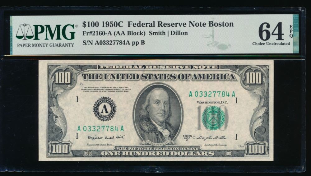 One 1950C $100 Boston FRN PMG 64EPQ.