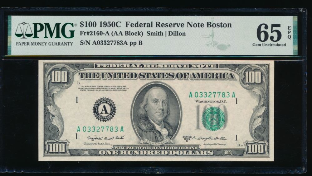 One 1950C $100 Boston FRN PMG 65EPQ.