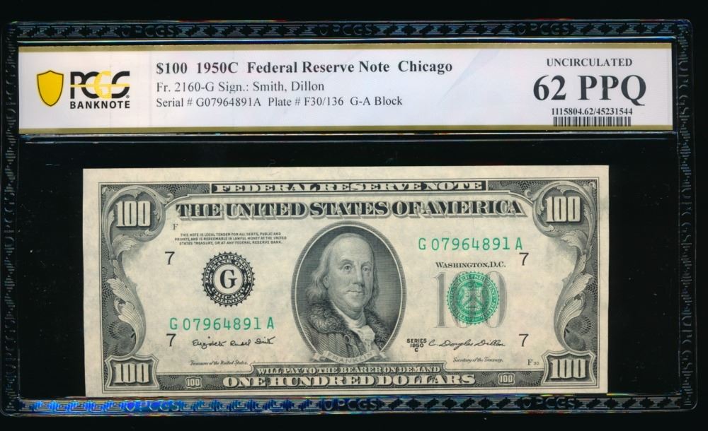 One 1950C $100 Chicago FRN PCGS 62PPQ.