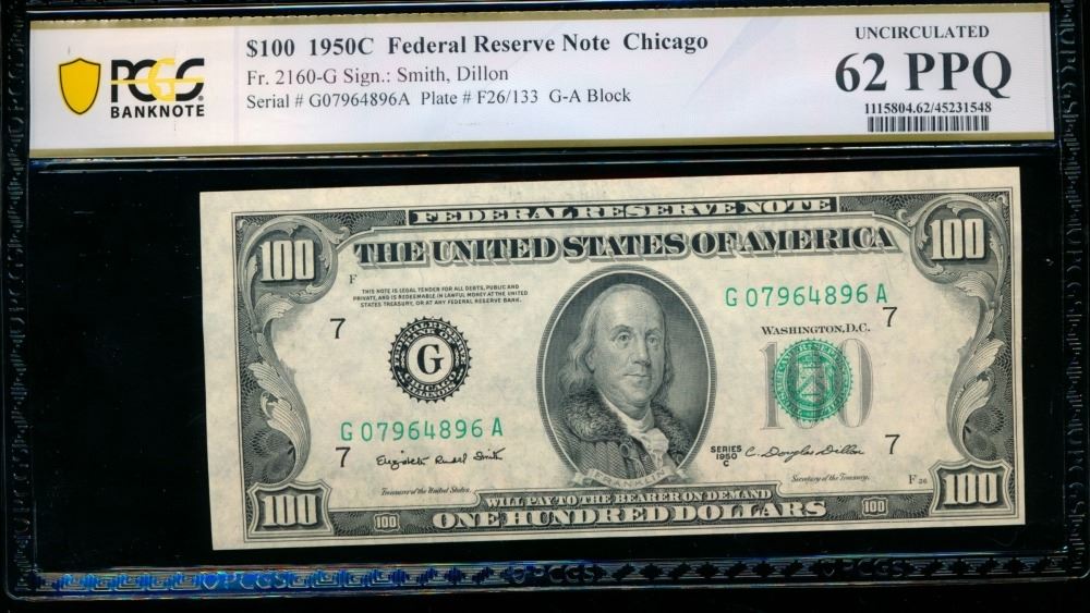 One 1950C $100 Chicago FRN PCGS 62PPQ.