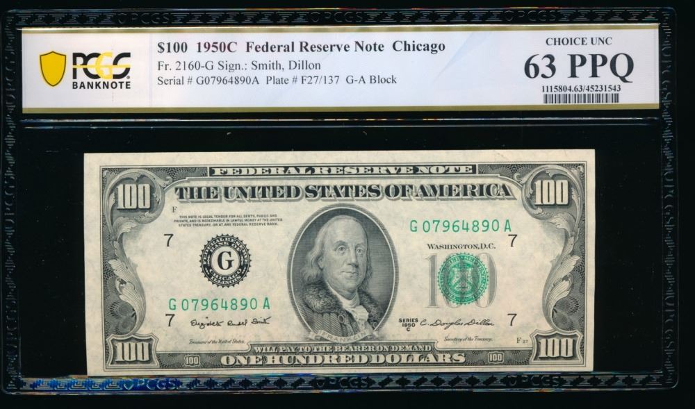 One 1950C $100 Chicago FRN PCGS 63PPQ.