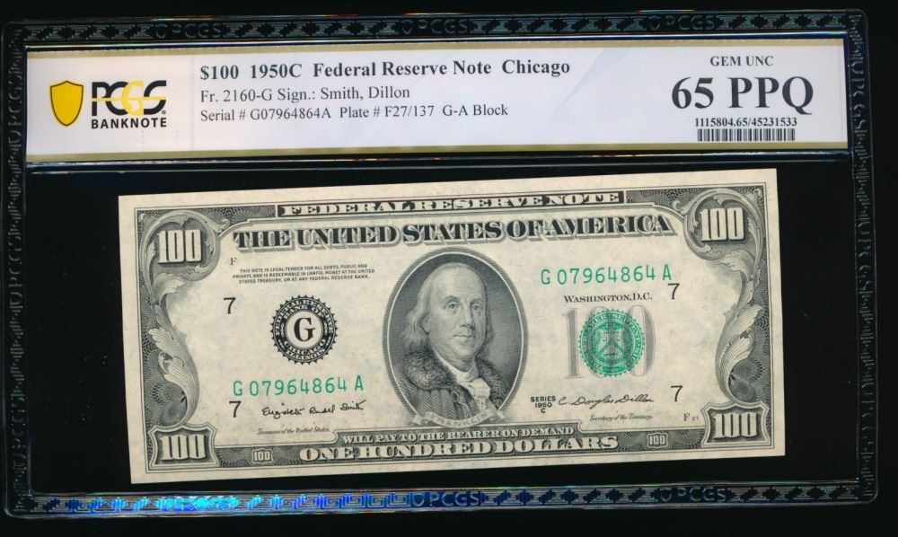 One 1950C $100 Chicago FRN PCGS 65PPQ.