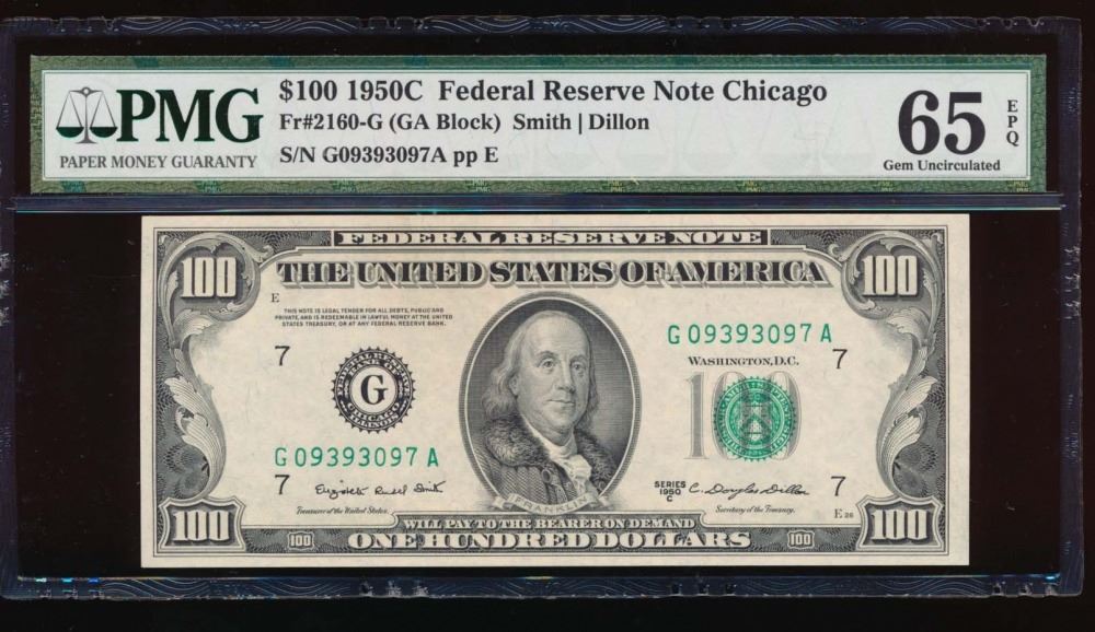 One 1950C $100 Chicago Federal Reserve Note PMG 65EPQ.