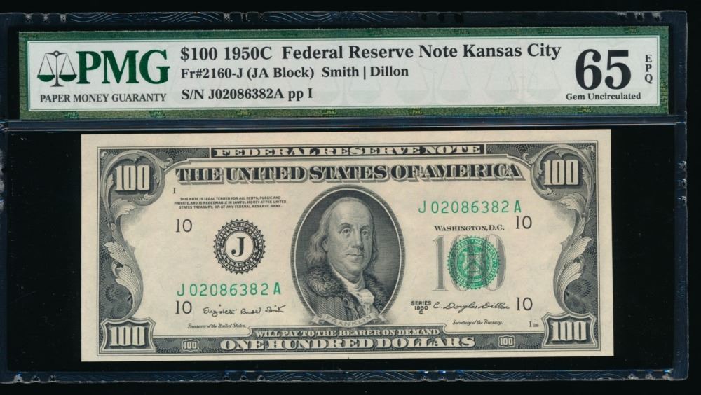 One 1950C $100 Kansas City FRN PMG 65EPQ.