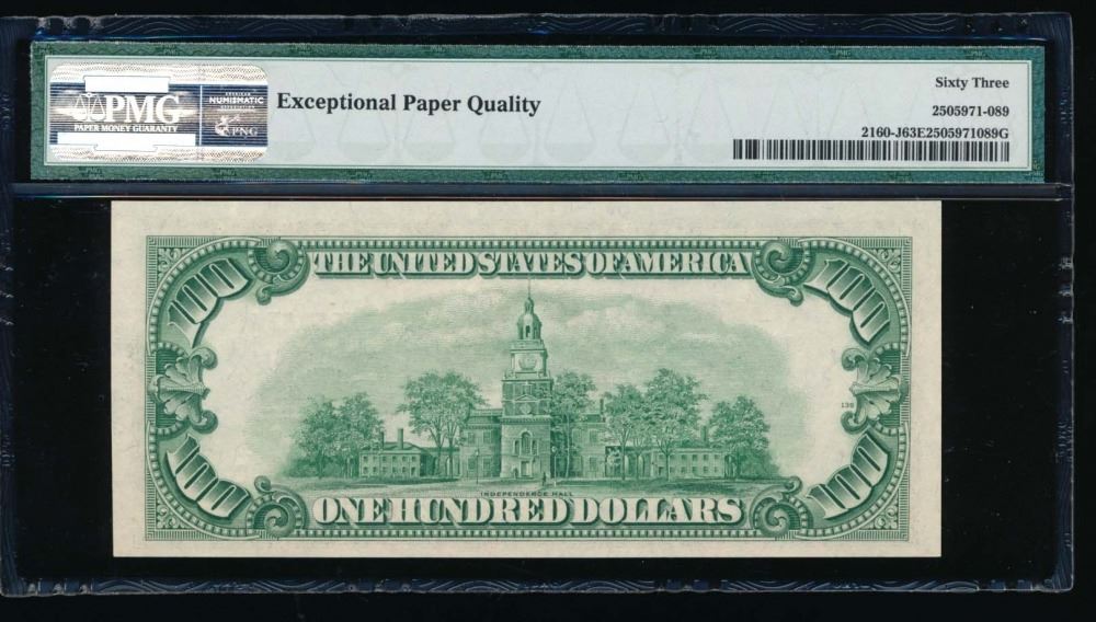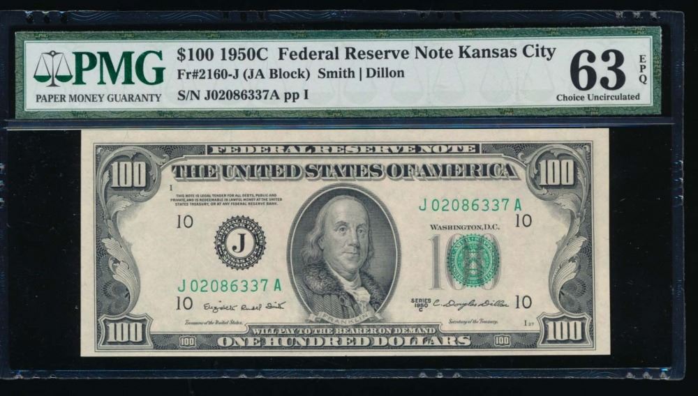 One 1950C $100 Kansas City Federal Reserve Note PMG 63EPQ.