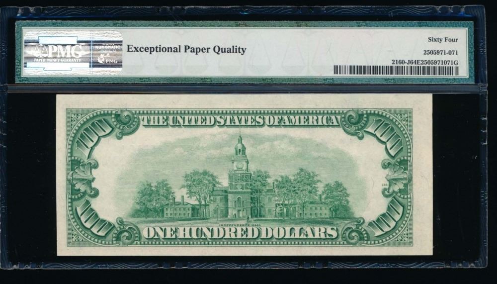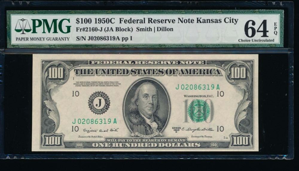 One 1950C $100 Kansas City Federal Reserve Note PMG 64EPQ.
