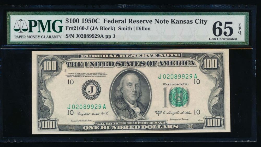 One 1950C $100 Kansas City Federal Reserve Note PMG 65EPQ.
