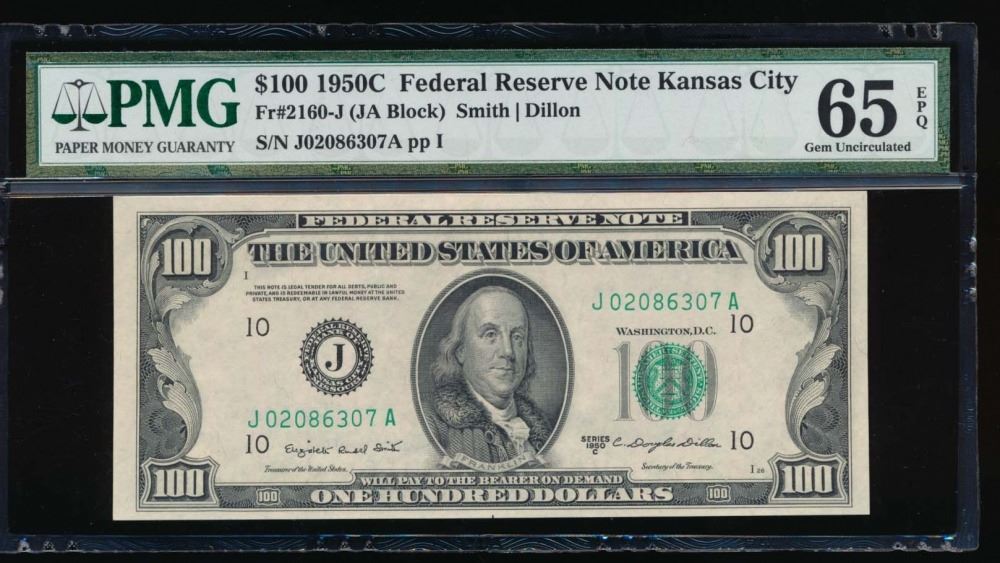 One 1950C $100 Kansas City Federal Reserve Note PMG 65EPQ.