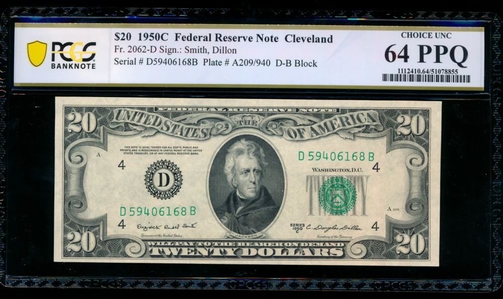 One 1950C $20 Cleveland FRN PCGS 64PPQ.