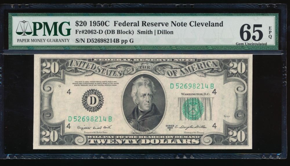 One 1950C $20 Cleveland Federal Reserve Note PMG 65EPQ.
