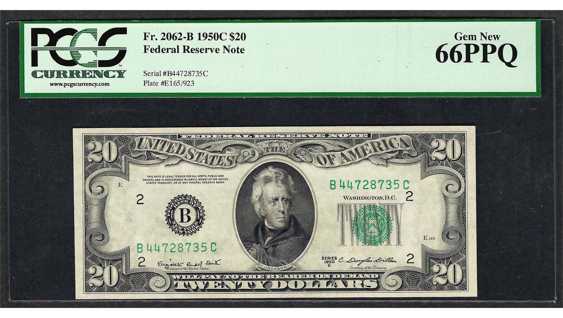 One 1950C $20 Federal Reserve Note Fr.2062-B PCGS Gem New 66PPQ. PCGS Graded.