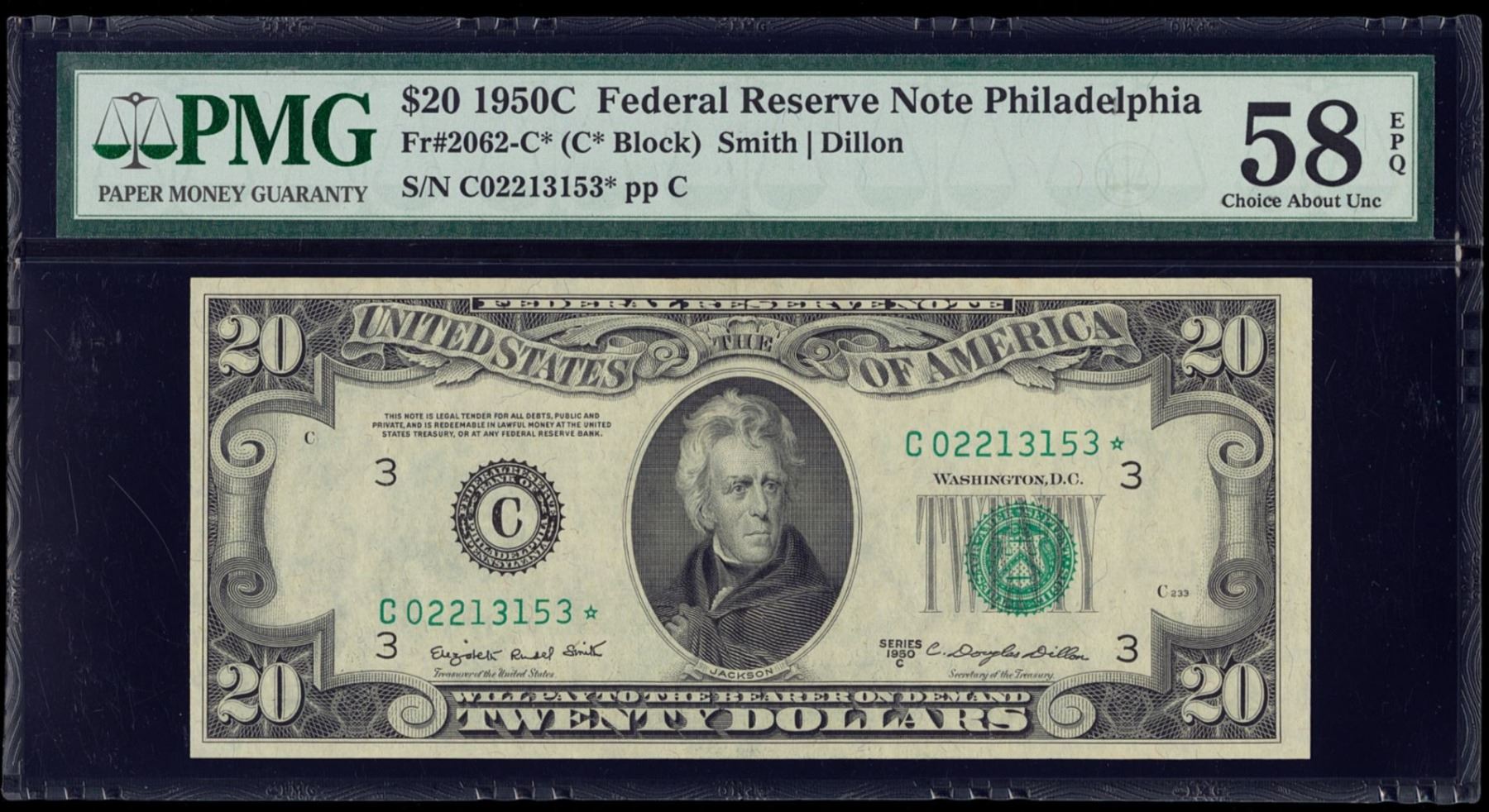 One 1950C $20 STAR Philadelphia FRN PMG 58EPQ.