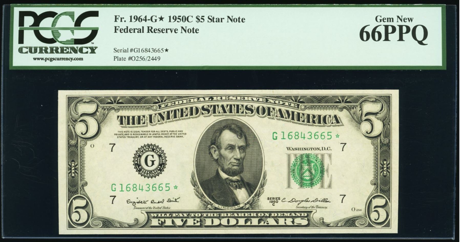 One 1950C $5 STAR Chicago FRN PCGS 66PPQ.