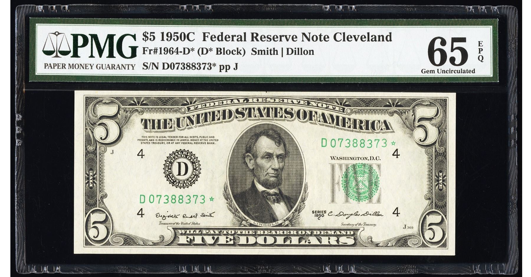 One 1950C $5 STAR Cleveland FRN PMG 65EPQ.