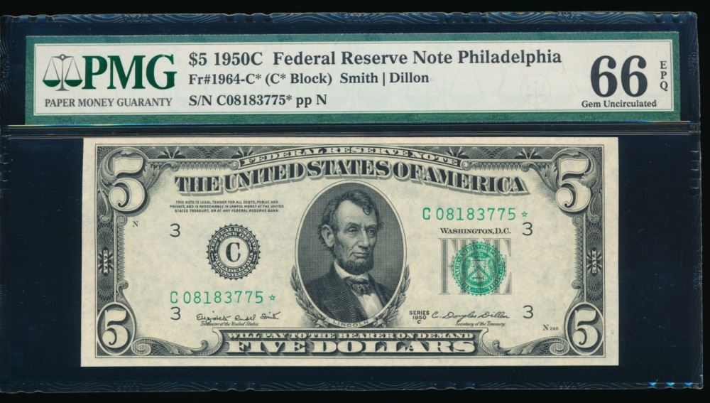 One 1950C $5 STAR Philadelphia FRN PMG 66EPQ.